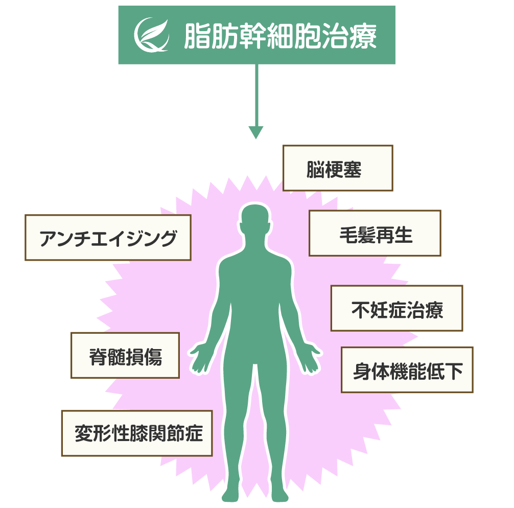 骨髄や脂肪組織などの身体中に存在する間葉系幹細胞は、限定的ではあるものの多分化能を有して組織修復に必要な細胞になることができる細胞です。身体の修復や再生を行う幹細胞は、加齢と共に減少します。幹細胞が減少すると、組織の修復が間に合わず老化現象として現れます。この減少した幹細胞を外部からおぎなうことで、障害を受けた部位、異常をきたした部位、老化した部位を補修し身体全体の自己修復をおこなうことを目的とします。